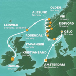 You’ll arrive for an overnight in Oslo with it’s brightly painted wooden houses and nods to Norway’s maritime history and Viking era. Finally, spend a night at sea sampling fine wines before disembarking after an overnight in Amsterdam.