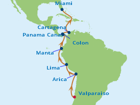 | Sun 19 Mar | Valparaiso, Chile | Embark | 6:00pm | |