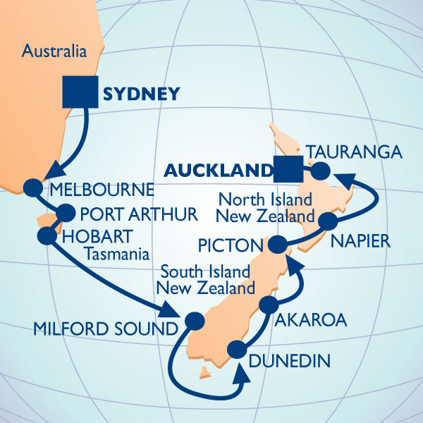 | Sun 24 Jan | Milford Sound, New Zealand | Cruising | 7:00am | 10:00am |