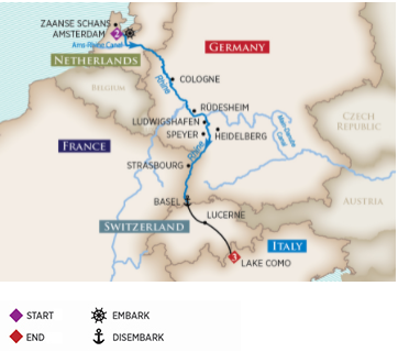 Join Wine Diva Deb cruising the Rhine River through France, Germany, The Netherlands and Switzerland. Contoured by vineyard-clad hills and castles from yesteryear, the legendary Rhine captivates. Experience the allure of France’s Alsace region in its welcoming capital, Strasbourg, and its priceless gem, Riquewihr. Then there is Breisach, rising above the vineyards of the Rhine, and Freiburg, one of Germany’s sunniest cities and gateway to Black Forest. Fabled towns lost in time present you with the chance to taste local flavors—Rüdesheimer coffee and Kölsch beer—and to touch history up close with guided hikes and bike rides. From Amsterdam’s colorful canals to the majestic Swiss Alps, journey into the heart of the destinations you visit.